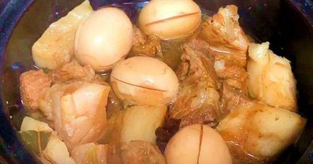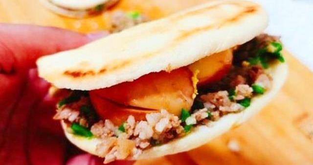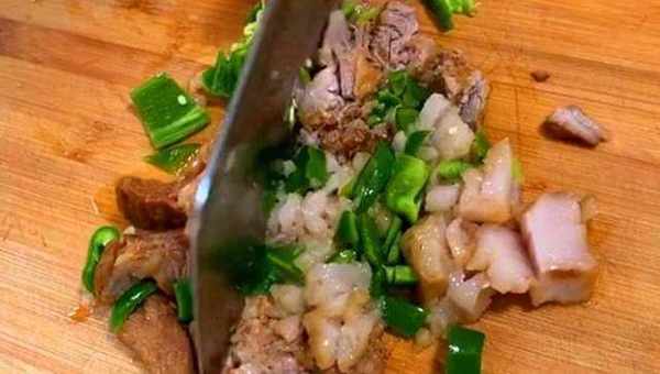 第六步:砂鍋中的燉肉煮熟,雞蛋也變成瞭好吃的鹵蛋,取一個青椒切小塊,撈出適量鹵肉放案板上和青椒一起剁碎,一邊剁一邊加點湯,這樣吃起來有滋味。把鹵蛋一切兩半,取一個烙好的餅,用刀從中間片開,把鹵肉和鹵蛋放入餅中間夾好,一個香噴噴的肉夾饃就做好瞭,有肉、有菜、有雞蛋,營養豐富,外酥裡香,超級好吃。