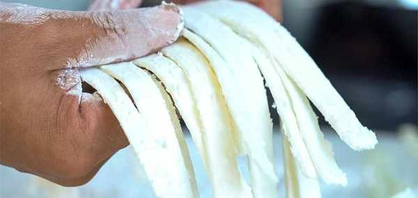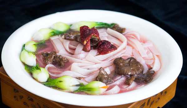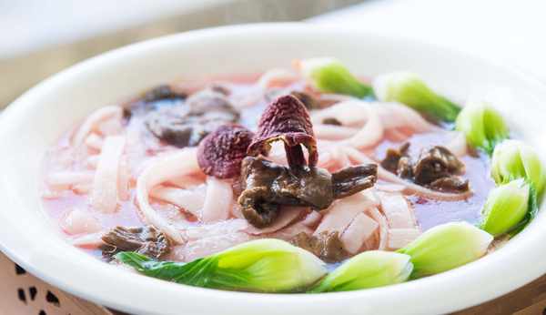 這是怎麼一回事呢?原來看上去像是寬面條的東西是用兩種材料配置而成的。由於煮熟之後的樣子和面條相似才取瞭一個紅菇面的名字。正宗的紅菇面做法考究,做出來之後味道鮮香不油膩。今天福建大廚就用當地食材教我們制作名為野山饈紅湯沐素綾的紅菇面。