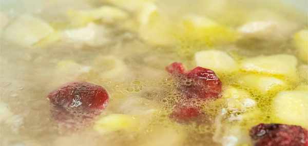2 切雞塊時肯定會剩下一些雞骨雞架,這個不要扔掉可以用來熬制雞湯。不需要放別的調料,撒上一些鹽即可。