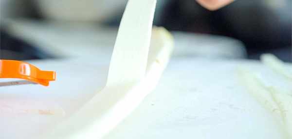 野山藥洗幹凈後用削皮器去掉表面的皮,然後削成寬度約為一厘米厚度約為兩毫米的條狀。