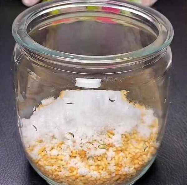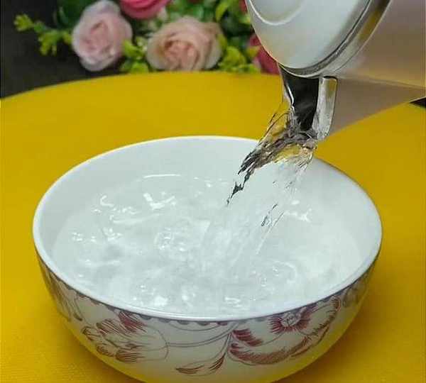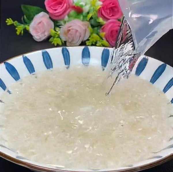 接著,碗中倒入開水,開水的量是大米的5倍,也就是200克大米加入1000克的開水,把開水放涼,一定用開水,不要用自來水,否則就會失敗哦。
