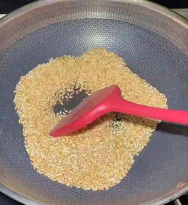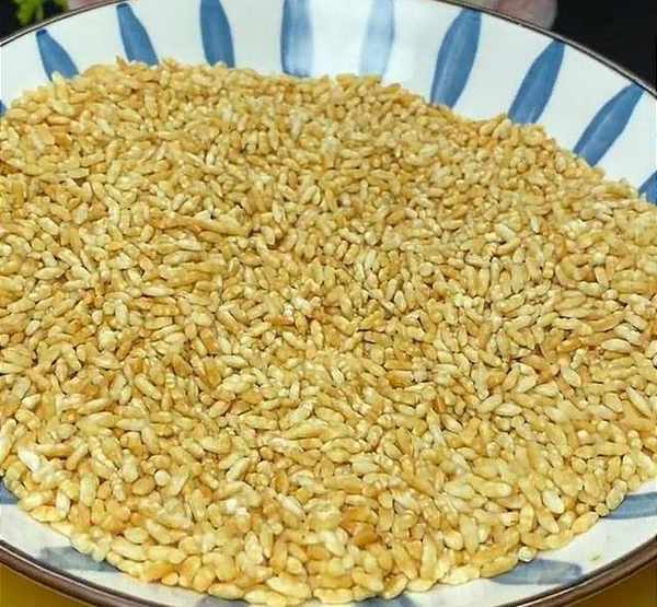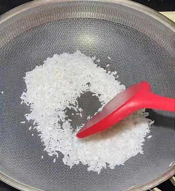 炒大米的過程,一定不要著急,用鏟子不停的翻炒,防止把大米炒糊,炒制時間大概15分鐘,炒至大米微微發黃的顏色。