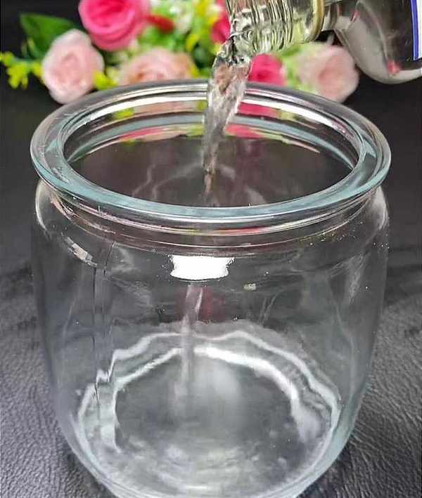 然後,再準備一個無油無水的玻璃容器,往裡面加入一點高度白*(加入白*的目的,就是為瞭防腐殺菌),蓋上蓋子給它充分的搖晃均勻。然後把白*倒掉。