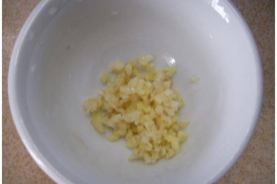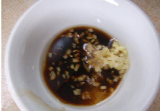 把蒜和薑分別剁成茸,取一小碗放少許糖,陳醋,醬油拌勻後加入剁好的薑蒜茸即成醬汁。