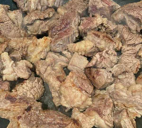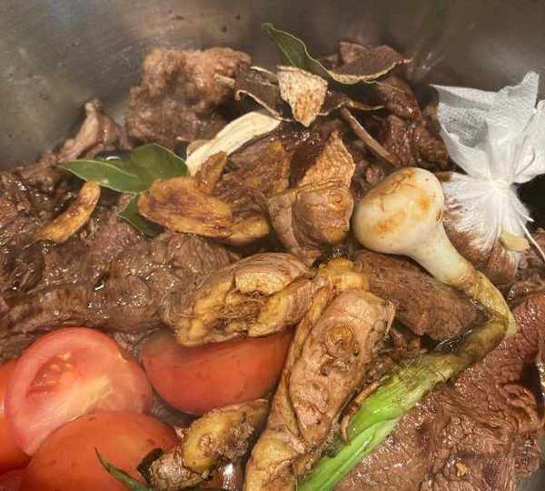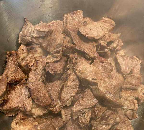 第10步、把所有煎好的牛腩倒入高壓鍋中。