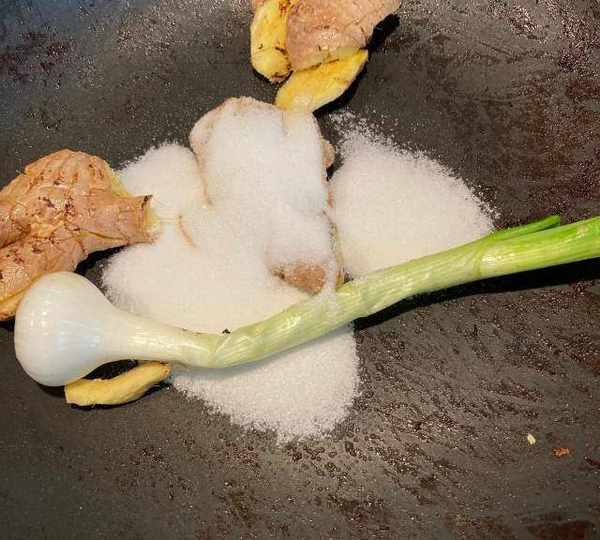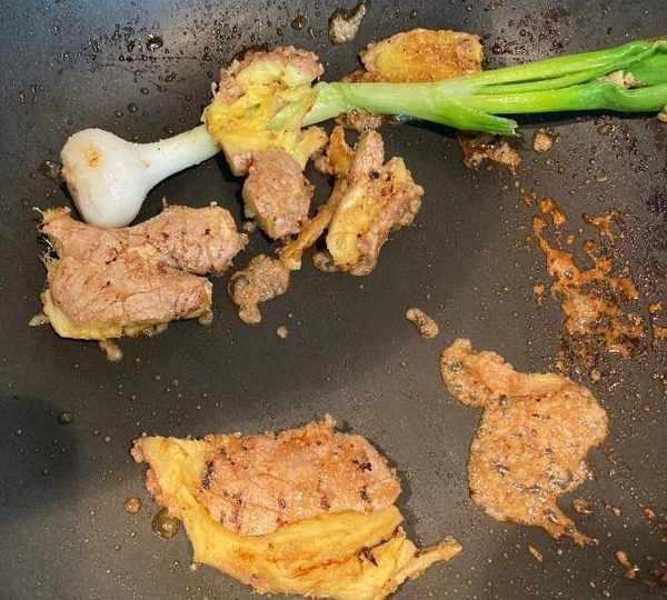 第12步、原鍋加入少許油把薑和蔥煎一下。