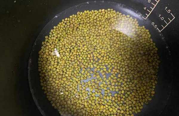2將洗凈浸泡後的綠豆,放入電飯煲中,再加入適量溫水(水也可以適當多放點)