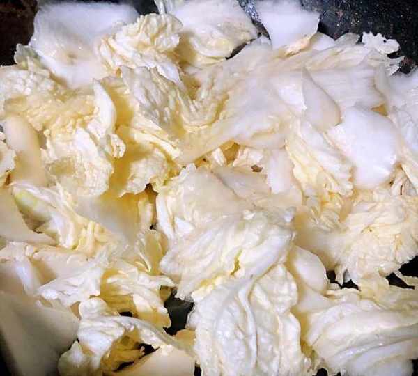 第8步、放入白菜片倒入少許一品鮮醬油炒至白菜變軟。