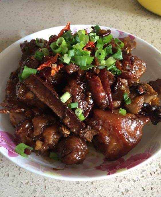先將豬蹄蒸熟,肉要蒸到松軟但是不能脫離骨頭。蒸好之後起油鍋,倒入幹辣椒與料酒生抽,放入薑蒜煸炒至香味倒入蒸好的豬蹄,爆炒,調好味,讓每一塊豬蹄都盡量入味。收汁後即可裝盤。