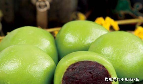 青團,這種糕點歷史悠久,也是江南地區的特色食品。和它的名字一樣,是藍色的,裡面有豆餡或者蓮蓉。它非常漂亮,又甜又軟,非常好吃。比網上有名的蛋糕好吃。