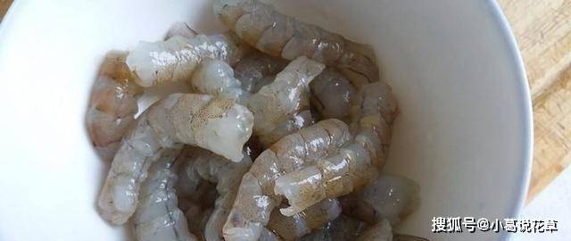 第一步:取適量鮮蝦,洗凈去頭。蝦去皮,去蝦線,剝成蝦狀。