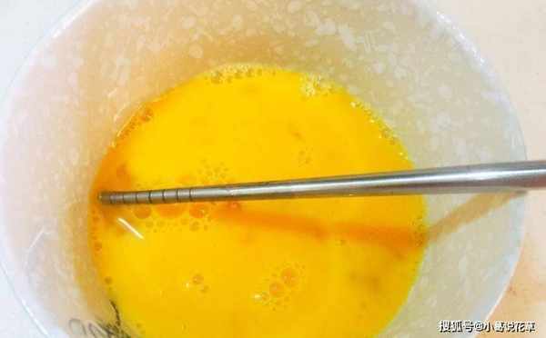 第四步:根據需要撒鹽,大火燒開,倒入蛋水,待蛋水變成蛋粉。