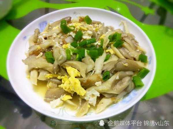 4.此時放入平菇一起翻炒均勻,加鹽調味,最後放入切好的韭菜段做配料。一道簡單營養的平菇炒雞蛋就完成啦。