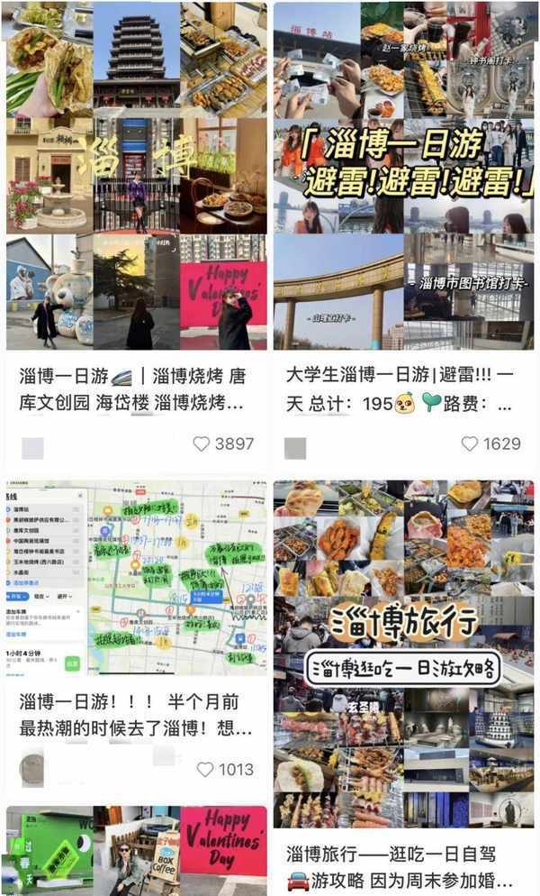 △淄博燒烤火瞭,到處都是淄博旅行攻略。/小紅書截圖