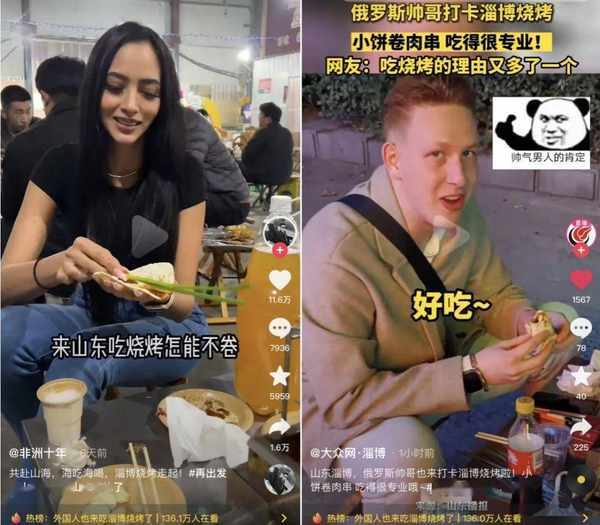 △淄博燒烤,讓外國人也食指大動。/抖音截圖
