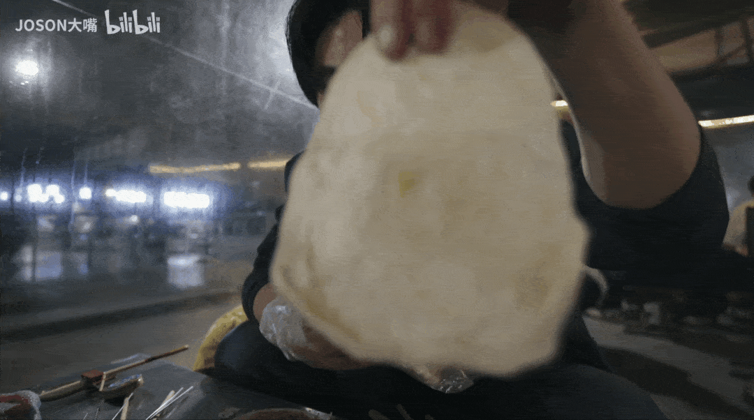 淄博燒烤的靈魂,是一張張看起來平平無奇的小餅。拿起一張小餅(不怕上火的可以放到爐子上烤到酥脆),沾上芝麻鹽,卷入烤串,再加上一根小蔥,碳水+脂肪+蛋白質+膳食纖維的四合一“淄博Taco”就完成瞭。