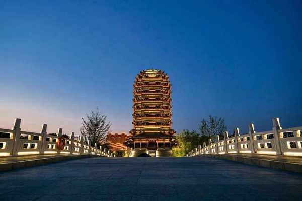 △落日下的淄博海岱樓。/圖蟲創意