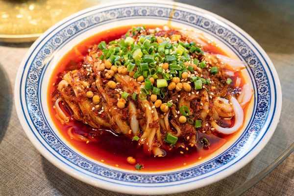 愛吃兔肉的四川人,也尤為喜愛吃肥腸,起源於成都的肥腸粉也成功征服瞭無數四川人。落入鍋中的被煮的透亮的紅薯粉,和紅油辣椒、濃鬱的高湯撞瞭個滿懷,配上香菜、蔥花、芽菜、花生等可口佐料,最後放上煮的軟糯Q彈的肥腸,隻是看上一眼,便會走不動路瞭。