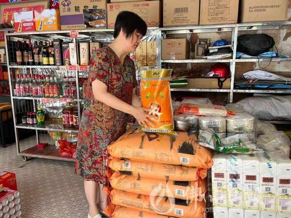 秋姐整理店裡的貨物。店鋪如今主要銷售糧油和日雜用品。