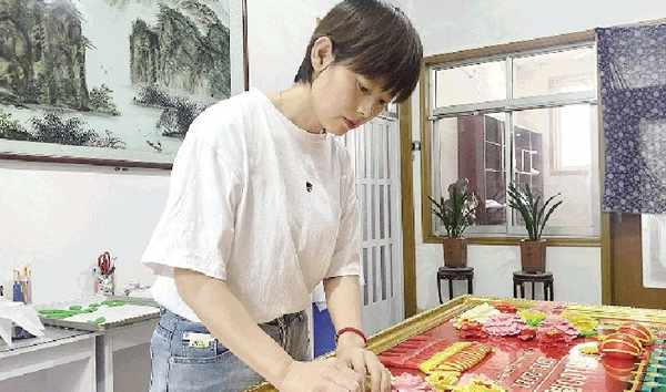 “現在做的這個作品和之前的一模一樣,很快就完成瞭。”李玲玲說,她利用天安門、燈籠、梅花、牡丹等中國元素,巧妙結合,用作品來表達對祖國的熱愛和祝福。