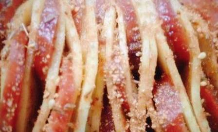 然後撒上一層燒烤料,基本都有賣的。可以再撒上芝麻和孜然粒。