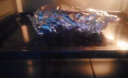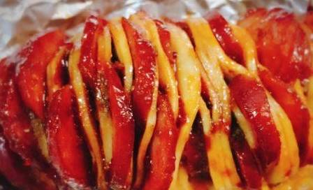 烤好後,趁熱打開錫紙,刷一層辣醬