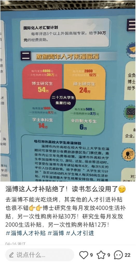 大批年輕人湧進淄博,也讓淄博欣喜之餘,也希望年輕人“來淄留淄”。淄博青年驛站為有志留下就業的青年提供免費入住的優惠,而早前發佈的人才引進政策更是利好年輕人來淄就業安傢。