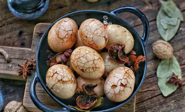 煮好的核桃雞蛋浸泡在湯鍋裡,最好浸泡一夜,會更入味,立夏過後每天吃一顆核桃殼煮的雞蛋,既補充瞭每日所需的蛋白質營養,還益腎固腎補氣,老幼都可以吃喲!