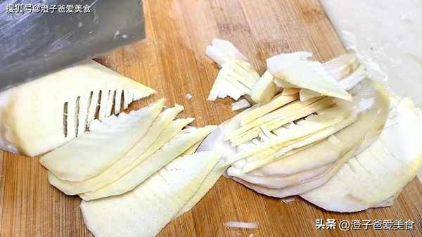 1.把鮮竹筍去皮洗凈後切成兩半,再改刀切成一毫米厚度的竹筍片,切好之後盛入菜盤中,青紅椒各一個切成薄片,和竹筍放一起。