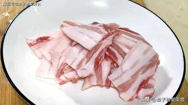 2.一塊五花肉,切成薄片,盛入盤中,老薑一小塊切成薑片,大蒜兩粒切成蒜片,小米辣一個切成顆粒,再來上十幾粒幹花椒。