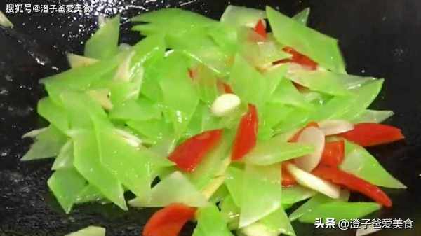 5.最後水淀粉勾芡,繼續大火翻炒至淀粉粘稠,即可出鍋裝盤,這樣做的清炒萵筍,顏色碧綠清脆,口感清淡爽口,喜歡的朋友就做一下吧!