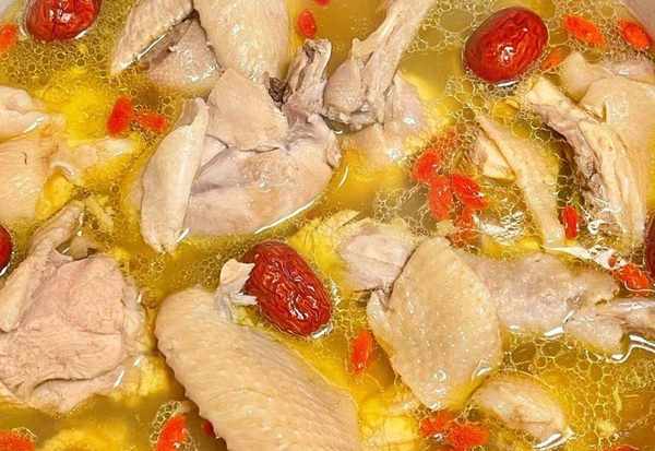準備食材:雞肉,板栗,紅棗,枸杞子,薑片。