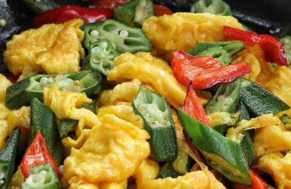 秋葵炒雞蛋的做法: