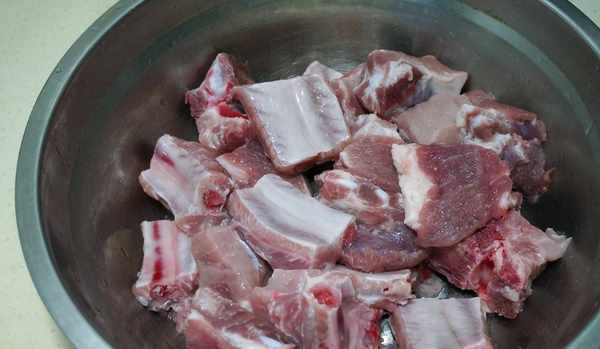 處理幹凈的排骨顯得有些發白,加水後基本上不會讓水變色,這樣說明洗凈瞭。