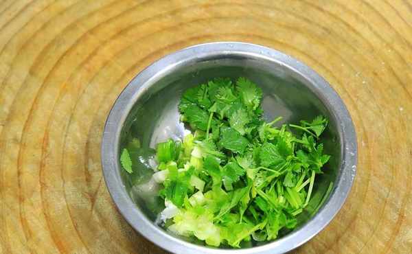 準備香菜幾根,切成段備用。