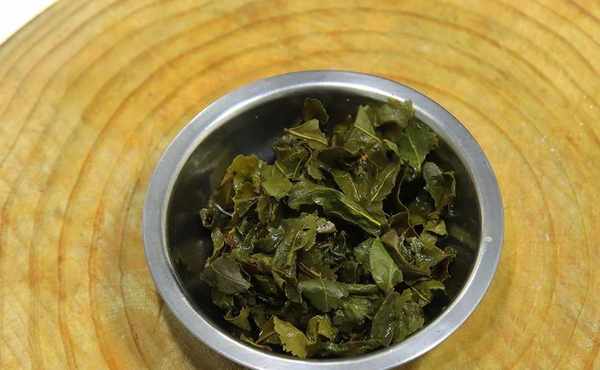 然後把茶葉倒入鍋中,翻炒2分鐘左右,炒出茶葉中的水分,茶葉炒幹炒香以後起鍋。