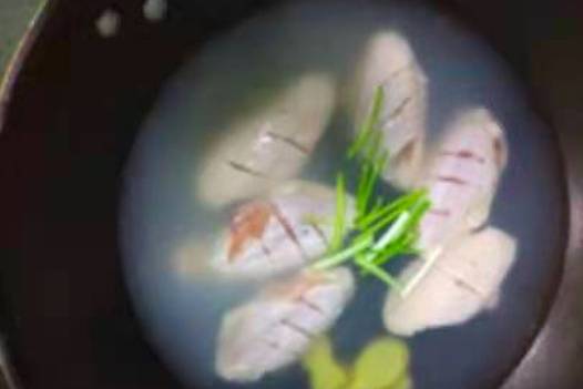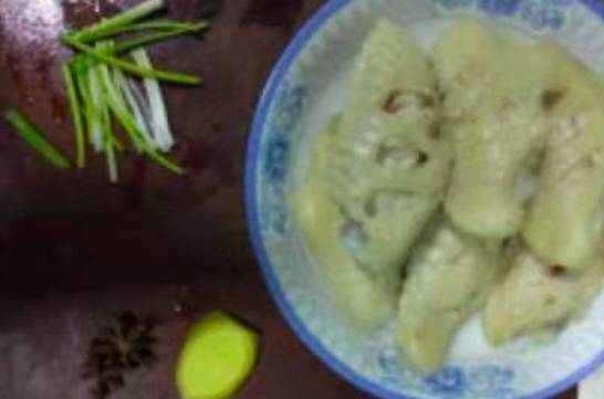 涼水下鍋~加蔥薑、料酒。大火煮開撇去浮沫,洗凈瀝幹水份備用