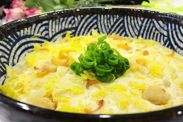 【菜品】:海米仙貝丁娃娃菜鴨蛋羹