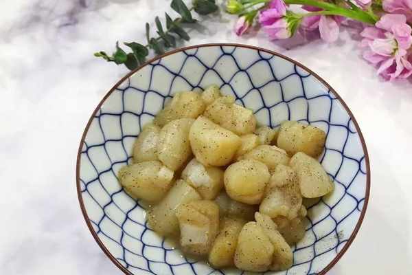 2、鮮貝丁洗幹凈,然後加少許料酒,胡椒粉,抓均勻,醃制15分鐘。