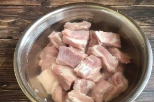 第一步、排骨切成小段,放入清水中,加一勺鹽浸泡1小時,中間換1次水。當排骨顏色變白,水變清澈後撈出洗凈。海帶提前泡發,切成大塊。冬瓜削皮後洗凈,切成片或塊。大蔥切段,生薑切片。