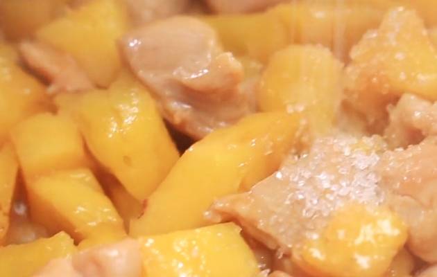 筆者把大雞腿,菠蘿,青椒做瞭一個簡單融合。