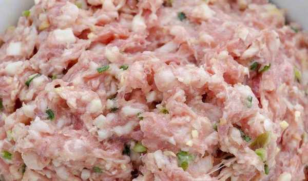 通常做包子、餃子的肉餡都要打進一些水,以便使肉餡軟滑口感好,即用清湯或花椒泡的水,向著一個方向攪,攪到“上勁”餡料成團不散。但韭菜餡的就不要打水瞭,水分很多,又沒有擠水的可能,所以肉餡中就不用打水瞭。