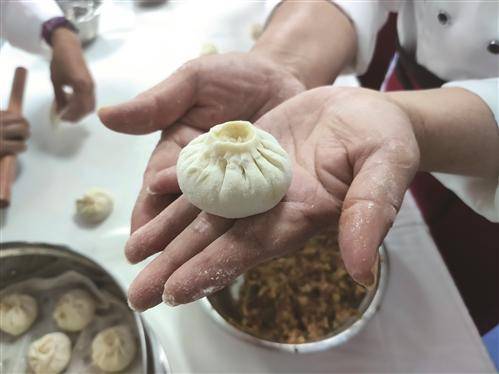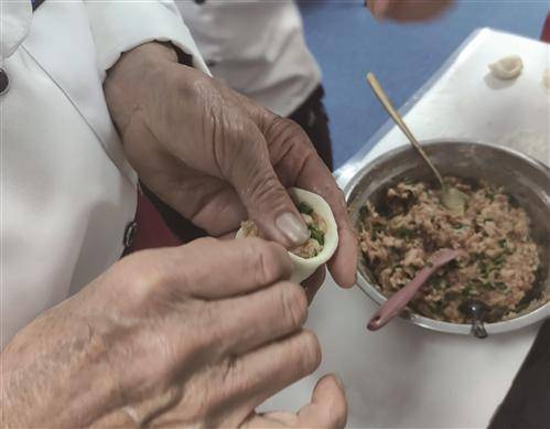 課堂上,老人們緊緊地圍在陳跟群身邊,全神貫註地看著,雙手跟著老師一捏一合,還不忘積極提問,轉眼間,一隻隻有模有樣的包子誕生瞭。