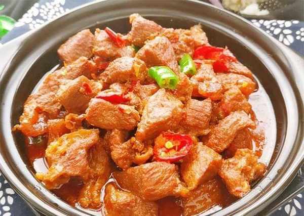 4、紅油拌勻,加入牛肉塊和料酒拌勻。