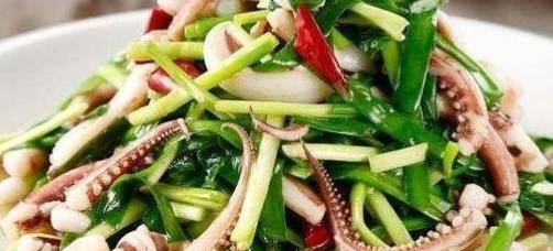 1、韭菜把老葉子摘去,用水沖洗幹凈,切5cm段,魷魚須切長條。