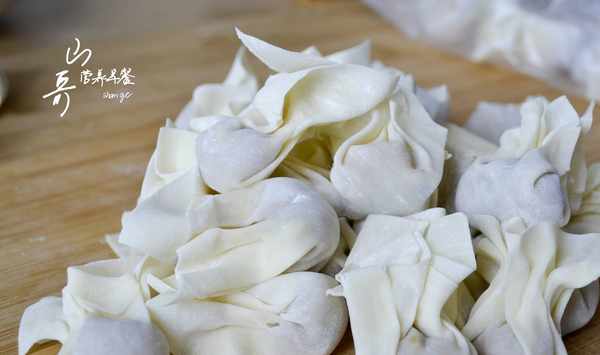 說起餛飩就想起瞭以前去朋友夜市攤幫忙,那時候朋友忙,正好餛飩包完瞭,讓我幫忙包,於是我就上手瞭,餛飩個個包得像餃子一樣。朋友看到瞭一直說我敗傢,人傢能用一個星期的餡兒料,我包一頓就基本給用完瞭,哈哈,照這麼個包法,非得賠死不可,哈哈。今天我們自己做餛飩吃,既然是自己吃,那就敗傢點,多包點餡兒料吧。