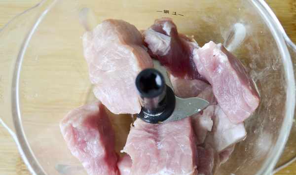 1.首先我們將豬肉切成小塊,然後放入絞肉機