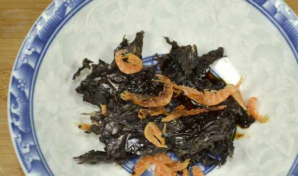 8.在煮餛飩的時候我們調一個湯的底料。今天我們分享給大傢一個小技巧,不用高湯也可以調出特別好吃的湯料。首先,我們在碗中放入蝦米、紫菜、醬油、食鹽和適量的小蔥,下面關鍵來瞭,再放入適量的豬油,如果沒有豬油的話可以澆少量熱油,激發出香味兒。其實,很多夜市攤上,老板們在湯料中也是要加入豬油或者其他動物油的,然後我們在加入幾滴香油,美味的湯料就做好瞭
