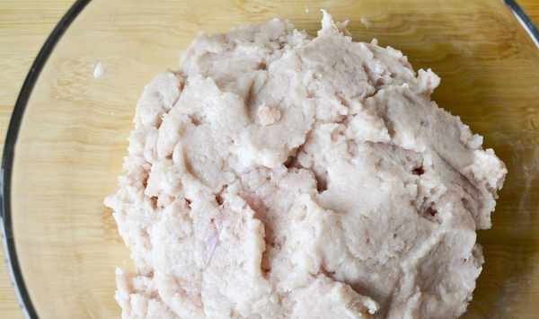 3.啟動絞肉機,將豬肉打成肉泥,然後盛出來放入碗中