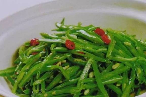 步驟一:扁豆撕掉兩邊的細絲,洗幹凈瀝幹水分。